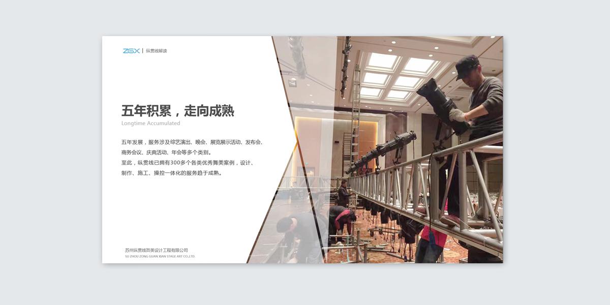蘇州縱貫線舞美成立于2012年,公司專注于舞美文化事業(yè)建設(shè),蘇州企業(yè)宣傳PPT設(shè)計